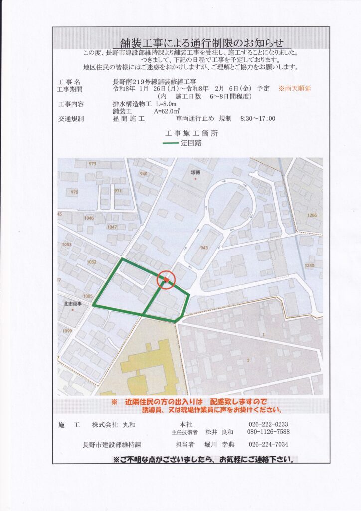 舗装工事による通行制限のお知らせ